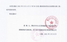 本項(xiàng)目截止2021年2月18日17時(shí)00分前,繳納投標(biāo)保證金家數(shù)未滿三家,故作流標(biāo)處理。特此通知!采購人:雅安市名山區(qū)茶城建設(shè)工程有限公司采購招標(biāo)代理機(jī)構(gòu):四川省中遂建設(shè)項(xiàng)目管理有限公司日期:2021年2月20日...