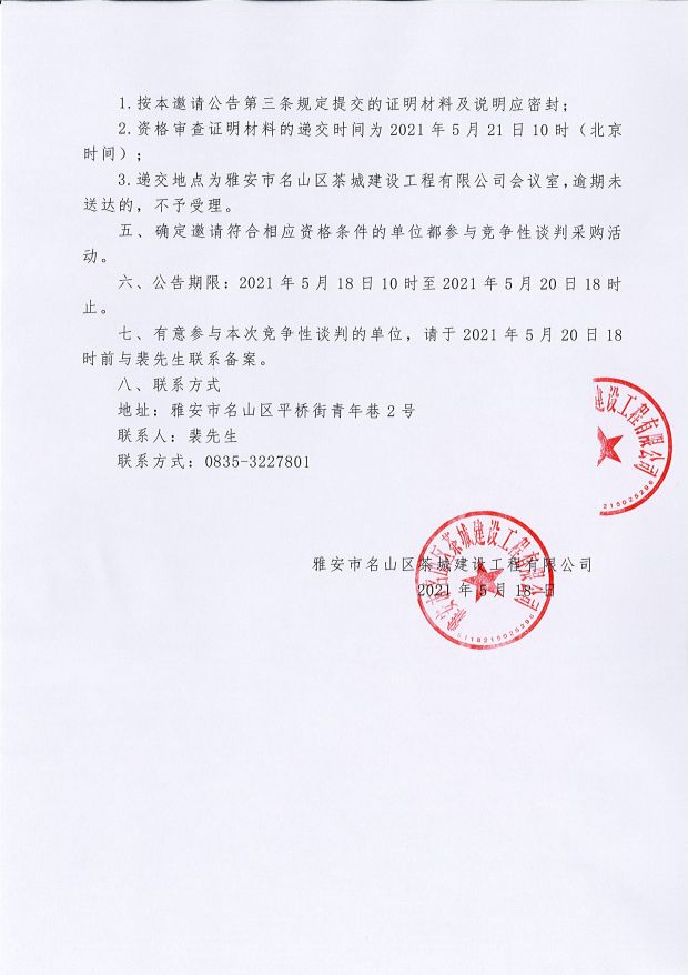 雅安市名山區(qū)茶城建設(shè)工程有限公司關(guān)于皇茶大道安置房項(xiàng)目、槐溪慧谷北大附中安置房項(xiàng)目結(jié)算公告...